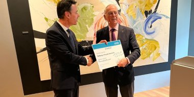Foto Grädel/Ogi: Sämtliche Anwesenden spendeten je CHF 20.00 zugunsten der Stiftung «Freude herrscht». Der Geschäftsführer Hans Jörg Grädel überreichte Herrn Ogi einen Check in Höhe von CHF 1'500.00.
