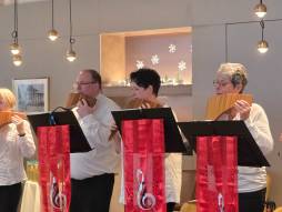 Rund 120 Bewohnende durften einen festlichen, besinnlichen Mittag in stimmungsvoller Atmosphäre erleben. Musikalisch begleitet wurde der Anlass von der Panflötengruppe Thun und Seeland, die mit ihren sanften Klängen für weihnachtliche Momente und leuchtende Augen sorgte.