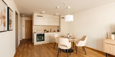In der Senevita Dreiklang wird Wohngefühl zum Wohlgefühl. Sie wohnen in einer charmanten, lichtdurchfluteten Wohnung mit eigener Loggia, moderner Küche, Badezimmer und einem Kellerabteil. Alle Räume sind barrierefrei und sorgen für hohe Lebensqualität. Die Wohnungen sind grosszügig und freundlich gestaltet und bieten eine moderne Infrastruktur. Durch die eigene Möblierung verleihen Sie Ihrer Wohnung eine persönliche Note. Unsere Notrufbereitschaft gibt Ihnen Sicherheit rund um die Uhr. Auch Ihr Haustier ist in der Senevita Dreiklang willkommen.