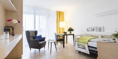 - 120 Pflege-Einzelzimmer mit eigenem Badezimmer (Dusche/WC) und Einbauschrank