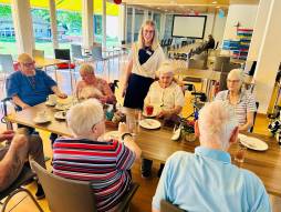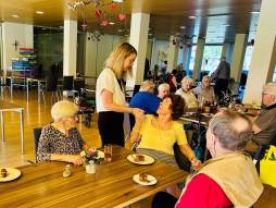 Nach dem Austausch zwischen Frau Thür und den Bewohnenden wartete heute ein feines Stück Kuchen aus der Maiegrüen-Küche!